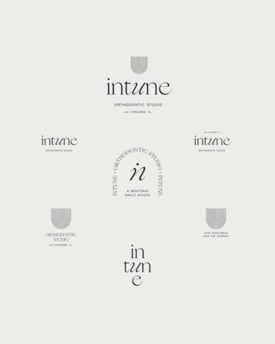 For the icon, I drew inspiration from the natural arch of teeth, translating it into a modern, minimal mark. Composed of layered arches, it represents the Invisalign aligners that gradually shape each patient’s smile. Together, these visual elements create a cohesive, elegant, and meaningful identity that perfectly embodies Intune's boutique experience.